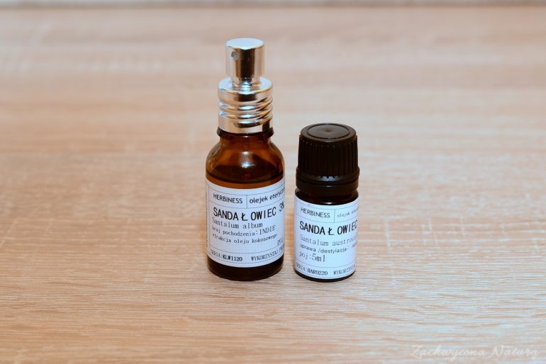 Olejek sandałowy (sandalwood oil) jest otrzymywany z sandałowca białego (Santalum album) z rodziny sandałowcowatych (Santalaceae)